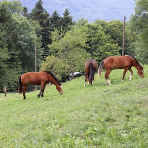 Wir bieten eine kleine Fohlenweide bevorzugt für Freiberger-Fohlen an. Die Fohlen werden in kleinen Gruppen (ca. 10 Tiere) aufgezogen und sind täglich betreut. Den Sommer verbringen die Fohlen auf einem Sömmerungsbetrieb im Berner Jura.
