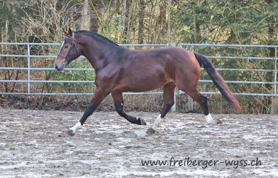 Jg. 2023, brauner Freiberger-Wallach mit sehr schönem warmen Braun, Stm. 159 cm. Rivage ist ein ausdrucksstarker, sportlicher, arbeitswilliger und zuverlässiger Wallach mit sehr starken Grundgangarten. Rivage hat einen guten Charakter. Er würde sich sehr eignen für den Sport. Rivage wurde an der Hengstselektion 2026 in Glovelier präsentiert. Rivage ist verkäuflich. Er kann anlässlich der Hengstpräsentation der PG Birstal am 15.03.2026 bei uns besichtigt werden. Rivage wird derzeit ausgebildet, er ist bereits angeritten und geht auch schon am Wagen.