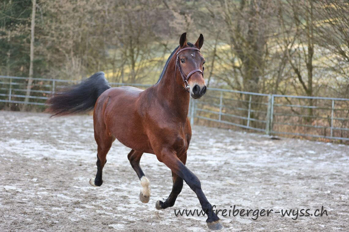 Jg. 2023, dunkelbrauner Freiberger-Wallach, Stm. 159 cm. Comet ist ein gut entwickelter Wallach mit super Galopp. Er würde sich sehr gut eignen für den Sport oder für ambitionierte Freizeitreiter. Comet ist sehr arbeitswillig. Er wurde an der Hengstselektion 2026 in Glovelier präsentiert. Comet ist verkäuflich. Er kann anlässlich der Hengstpräsentation der PG Birstal am 15.03.2026 bei uns besichtigt werden. Comet wird derzeit ausgebildet, er ist bereits angeritten und geht auch schon am Wagen.